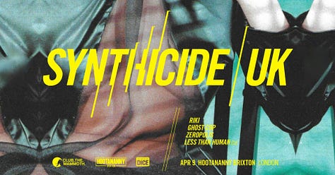 ✨ Thu, 9 Apr – Synthicide w/ Riki, Ghost Cop and Zeropolis @hootanannybrixton