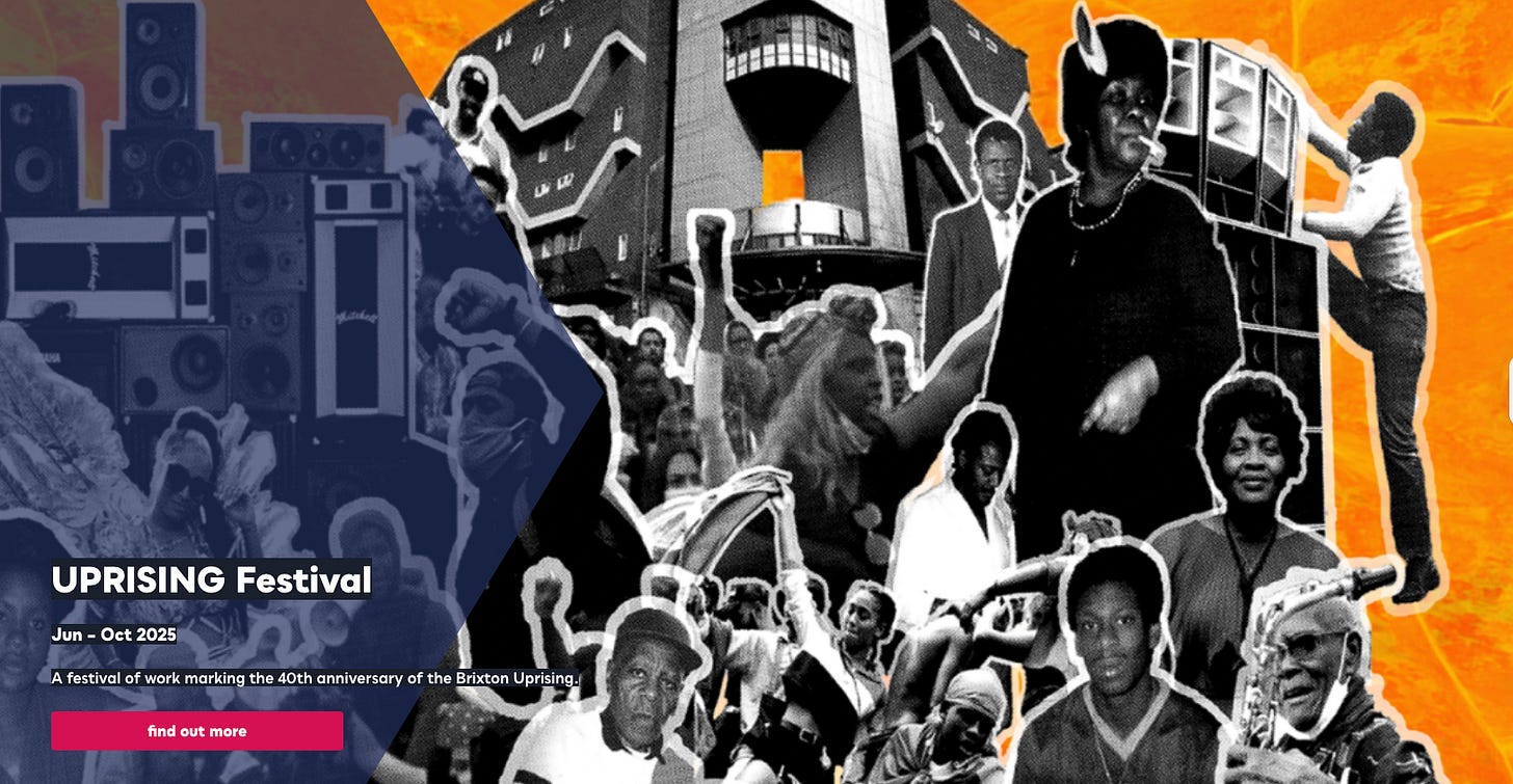 Uprising festival: celebrating Brixton’s 1980s activism and cultural heritage. And don't miss lunch for just £2.95 today at The Black Farmer