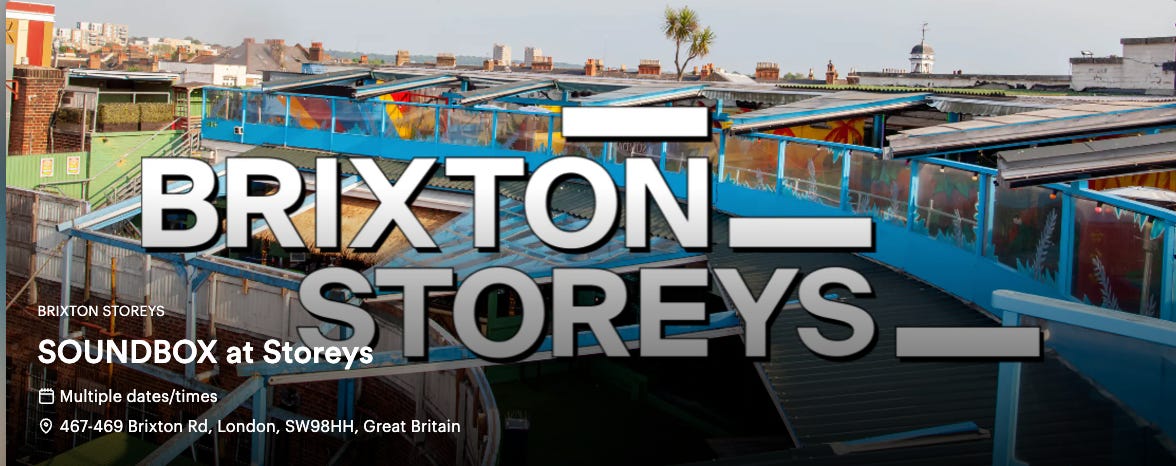 Brixton Day Party at Brixton Storeys - Sun 18 May – Brixton’s favourite rooftop rave returns! Bashment, Afrobeats, Amapiano, top DJs, street food, cocktails, and sunset views. First 600 tickets free—be quick, this always sells out.