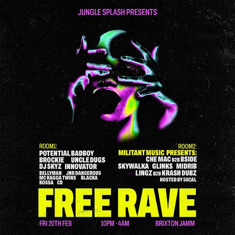 ✨ Fri, 20 Feb – Jungle Splash (Free Jungle Rave) @brixtonjamm